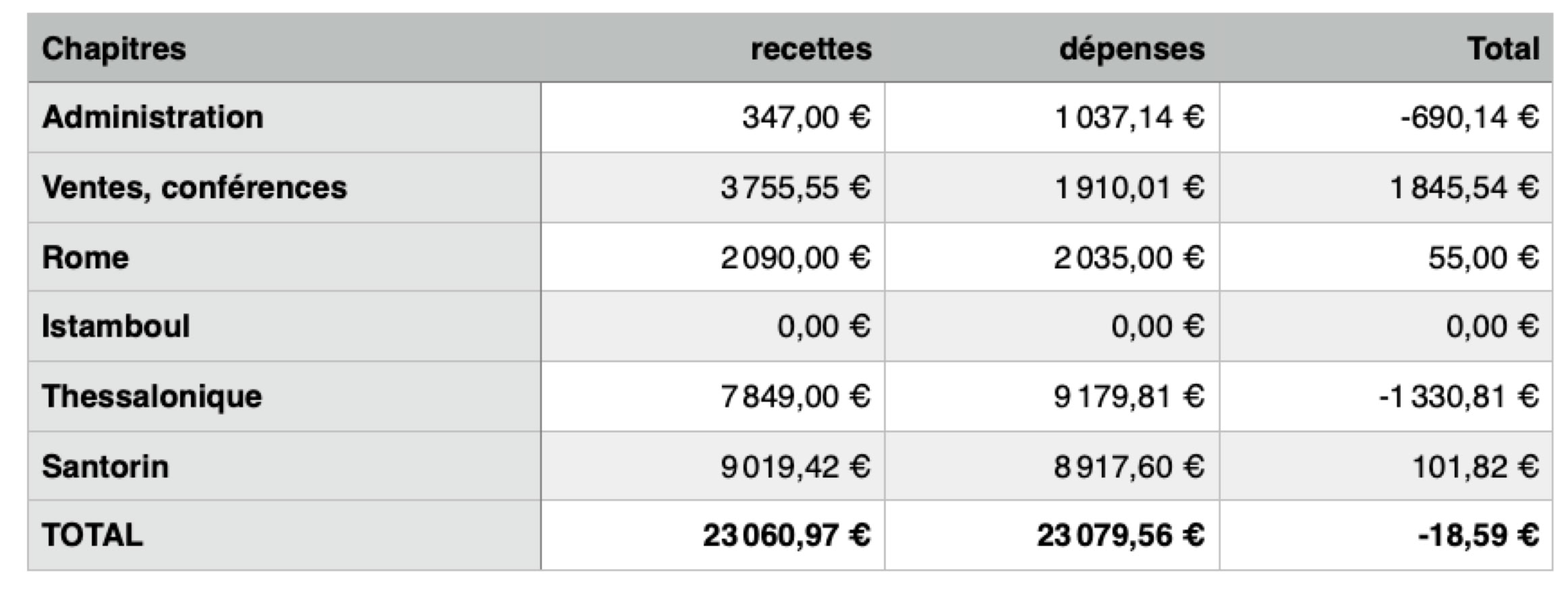 En ce qui concerne le voyage à Thessalonique, nous avions fixé un prix un peu inférieur à ce que nous avons finalement dépensé, et nous avons demandé aux participants qui le pouvaient de rajouter 43€ au prix qu’ils avaient déjà payé (420€). Beaucoup l’ont fait, qu’ils en soient remerciés ici.