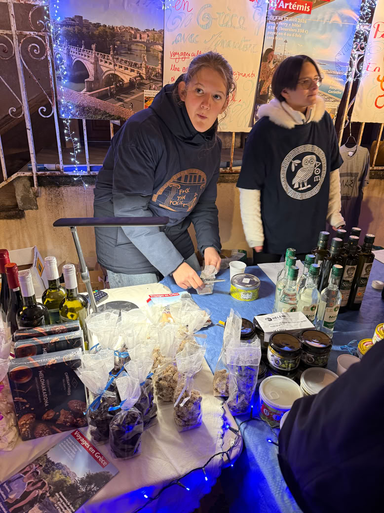 L’association a bénéficié du paiement des conférences sur l’Antiquité que j’ai faites auprès de l’UPAVAL et d’ACCÈS Romans, pour un montant de 200€. Nous avons par ailleurs réalisé des ventes de produits grecs en salle des professeurs, et vendu des livres sur le programme de prépa au bénéfice de l’association.