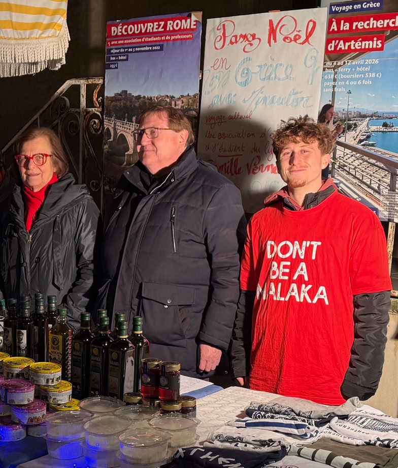 L’association a bénéficié du paiement des conférences sur l’Antiquité que j’ai faites auprès de l’UPAVAL et d’ACCÈS Romans, pour un montant de 200€. Nous avons par ailleurs réalisé des ventes de produits grecs en salle des professeurs, et vendu des livres sur le programme de prépa au bénéfice de l’association.